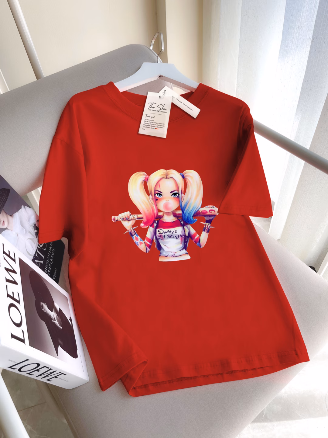 Áo thun in hình trở thành một phần quan trọng trong phong cách thời trang của nhiều cô gái, đặc biệt là khi muốn thể hiện sự mạnh mẽ và cá tính. Áo thun in hình Harley Quinn là một lựa chọn phổ biến nhờ vào hình ảnh của nhân vật này – biểu tượng của sự phá cách và tự do.