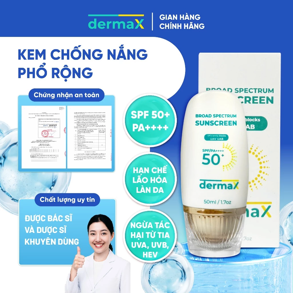 🔥 Kem Chống Nắng Phổ Rộng Cho Mặt DermaX SPF 50 Kiềm Dầu Ráo Chống Tia UV Cho Da Dầu, Khô, Nhạy Cảm đang giảm giá!
