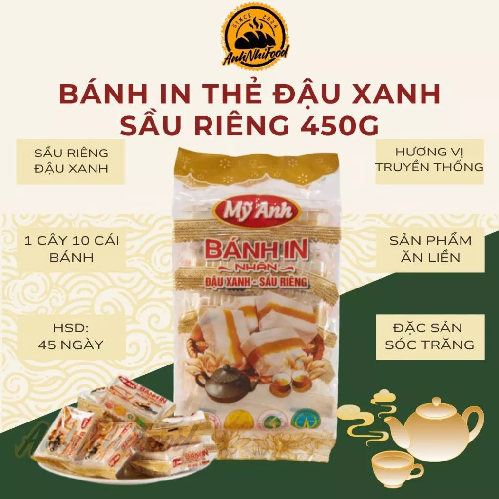 🔥 Bánh in THẺ đậu xanh sầu riêng Mỹ Anh túi 10 bánh 450g,đặc sản bánh in Vũng Thơm Sóc Trăng đang giảm giá!