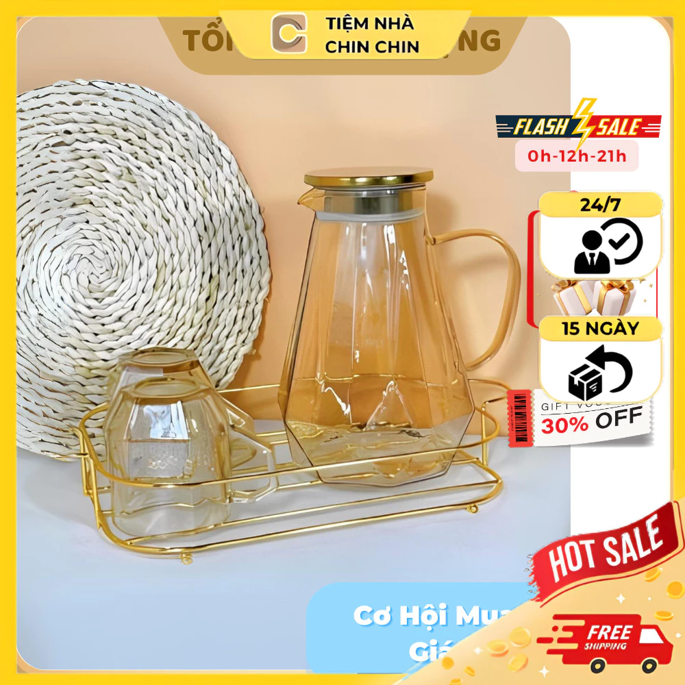 🔥 Combo Bộ Bình Cốc Chất Thủy Tinh Sức Chịu Nóng Bn01, Bình 1800ml + 6 Ly 280ml Thời Thượng Cản Nhiệt Tốt M07 đang giảm giá!