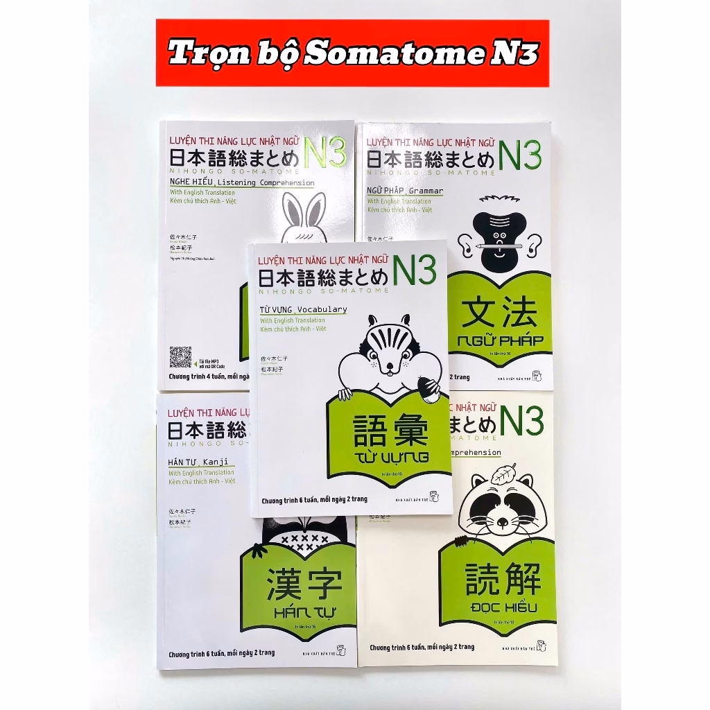 Bộ sách Soumatome N3 là một bộ sách chuyên về luyện thi năng lực tiếng Nhật N3, bao gồm 5 cuốn sách với nội dung được chia thành các phần rõ ràng: