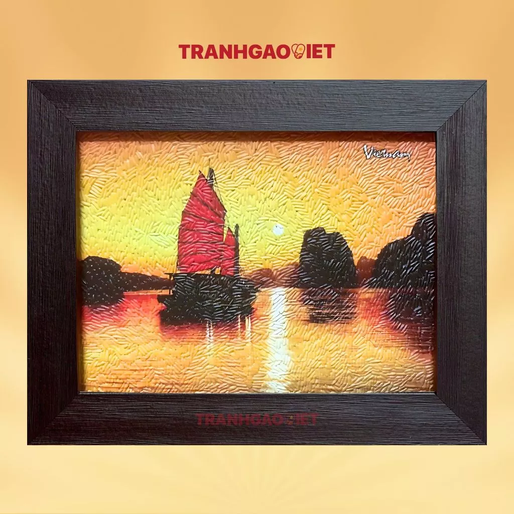 🔥 [Tranh Gạo Việt] – Hoàng Hôn nơi Hạ Long |Tranh để bàn -Tranh Thủ Công có chân kích thước 20x25cm đang giảm giá!