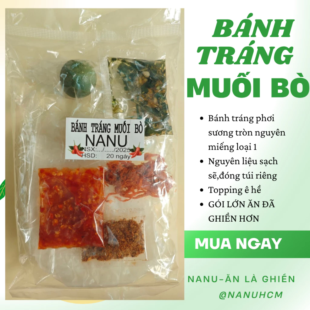 🔥 COMBO 10 Bịch Bánh Tráng phơi sương Muối Bò NANU đang giảm giá!
