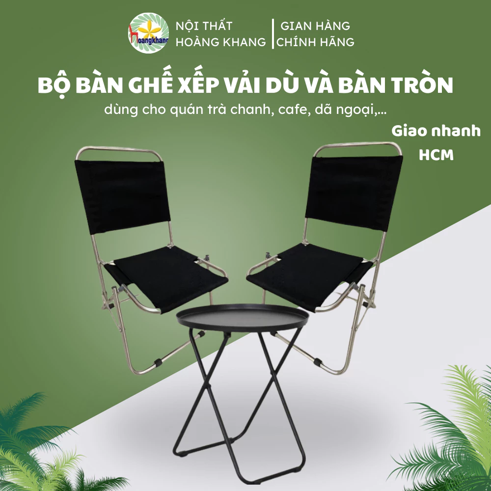 Nếu bạn đang tìm kiếm một sản phẩm bàn ghế xếp vải dù phù hợp cho chuyến du lịch hay buổi dã ngoại ngoài trời, hãy tham khảo trọn bộ bàn ghế xếp vải dù và 1 bàn tròn xếp nhỏ gọn đi câu cá, du lịch, dã ngoại, để ngoài ban công.