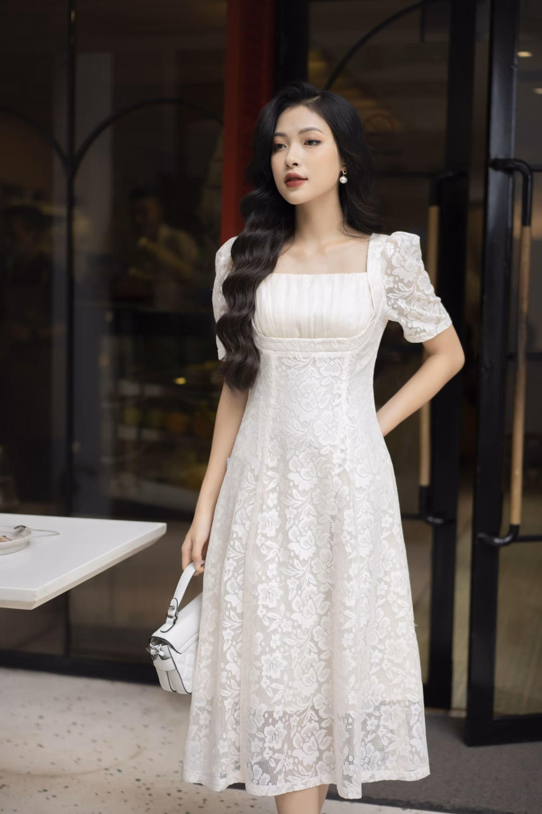 Đầm Nữ Dáng Xòe A Cổ Trò Phối Ren – Lựa chọn hoàn hảo cho buổi tiệc