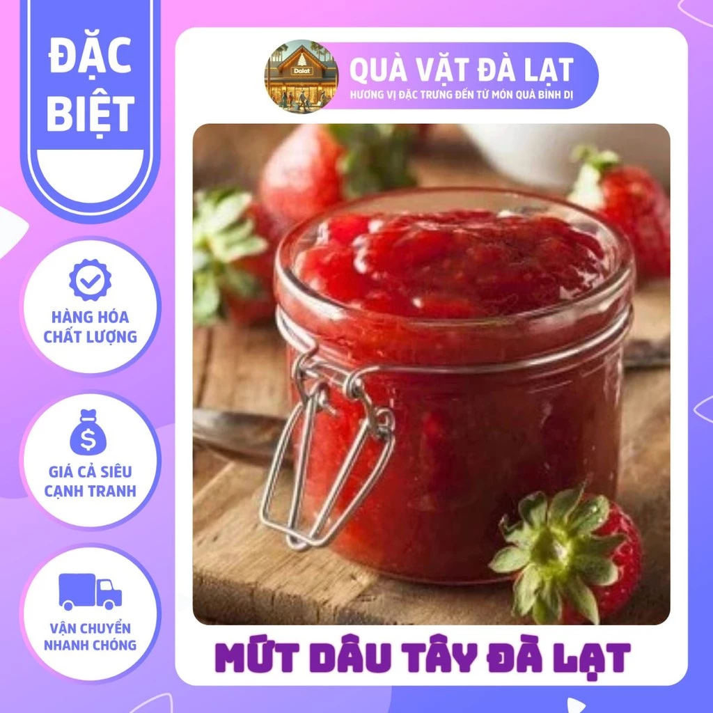 Một sản phẩm mứt dâu tây ngon và chất lượng mà bạn có thể tham khảo là MỨT DÂU TÂY VỊ CHUA + NGỌT, THƠM DÂU, DẺO QUỆN, ĂN CỰC NGON KHI KẾT HỢP VỚI BÁNH MÌ – QUÀ VẶT ĐÀ LẠT. Sản phẩm này được làm từ dâu tây tươi Đà Lạt, không chứa chất bảo quản và có vị chua ngọt cân đối. Giá gốc của sản phẩm là 79048 VND, nhưng hiện tại đang được giảm giá còn 61756 VND. Bạn có thể mua sản phẩm này tại địa chỉ này.