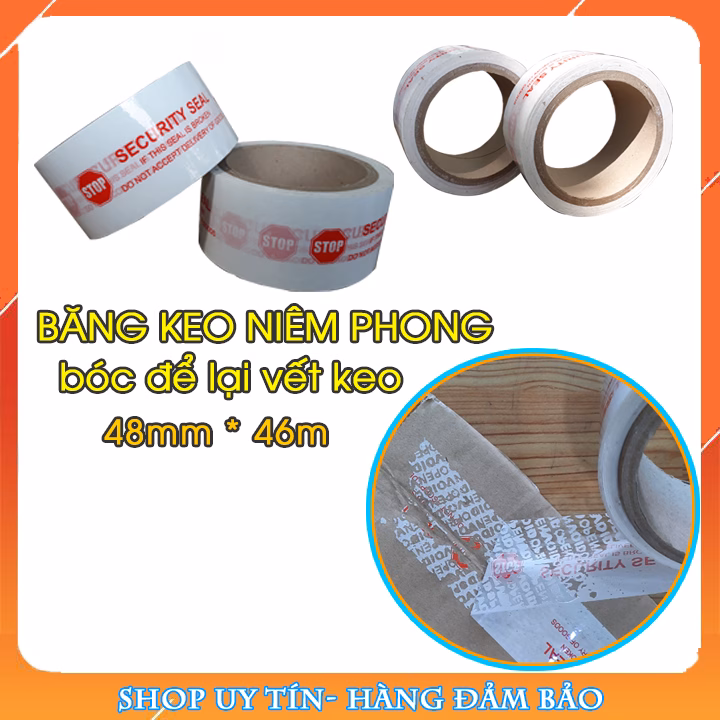 🔥 Băng keo niêm phong 48mm x 46m, lưu lại vết keo khi bóc, niêm phong thùng giấy carton, túi, bao hàng, bì thư đang giảm giá!