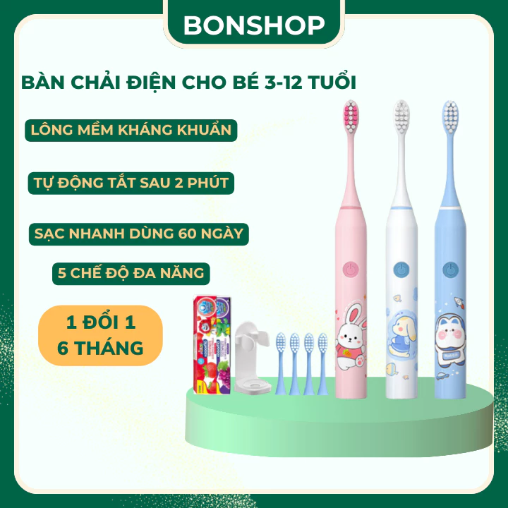 🔥 Bàn chải điện cho bé siêu âm tự động, lông chải mềm kháng khuẩn cho bé từ 3 tuổi BS12 đang giảm giá!